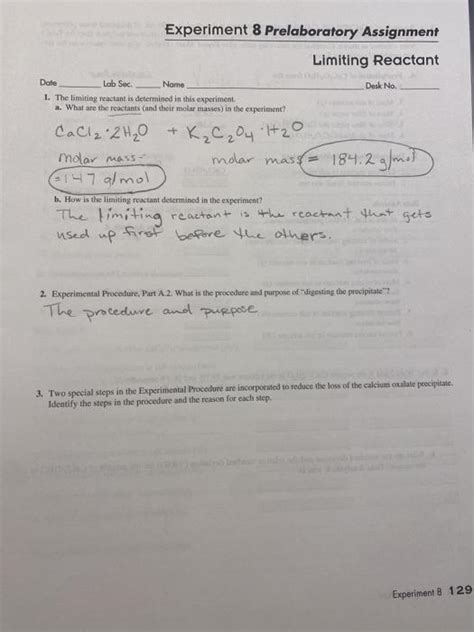 AEG - Reading Online EXPERIMENT 8 LIMITING REACTANT ANSWERS rtf Open Library